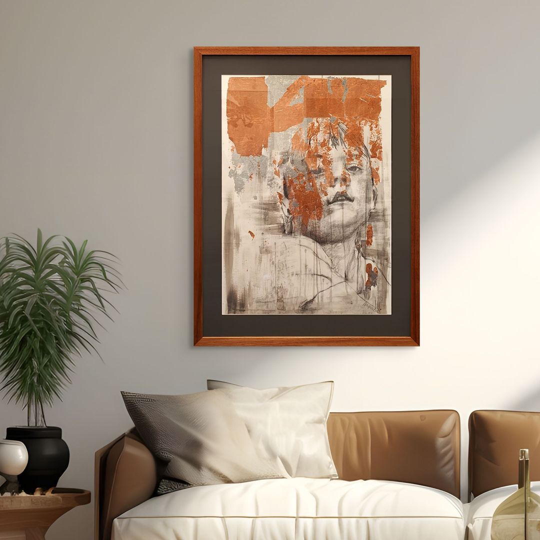 Framed with a charcoal grey matboard and waxed blackwood frame.