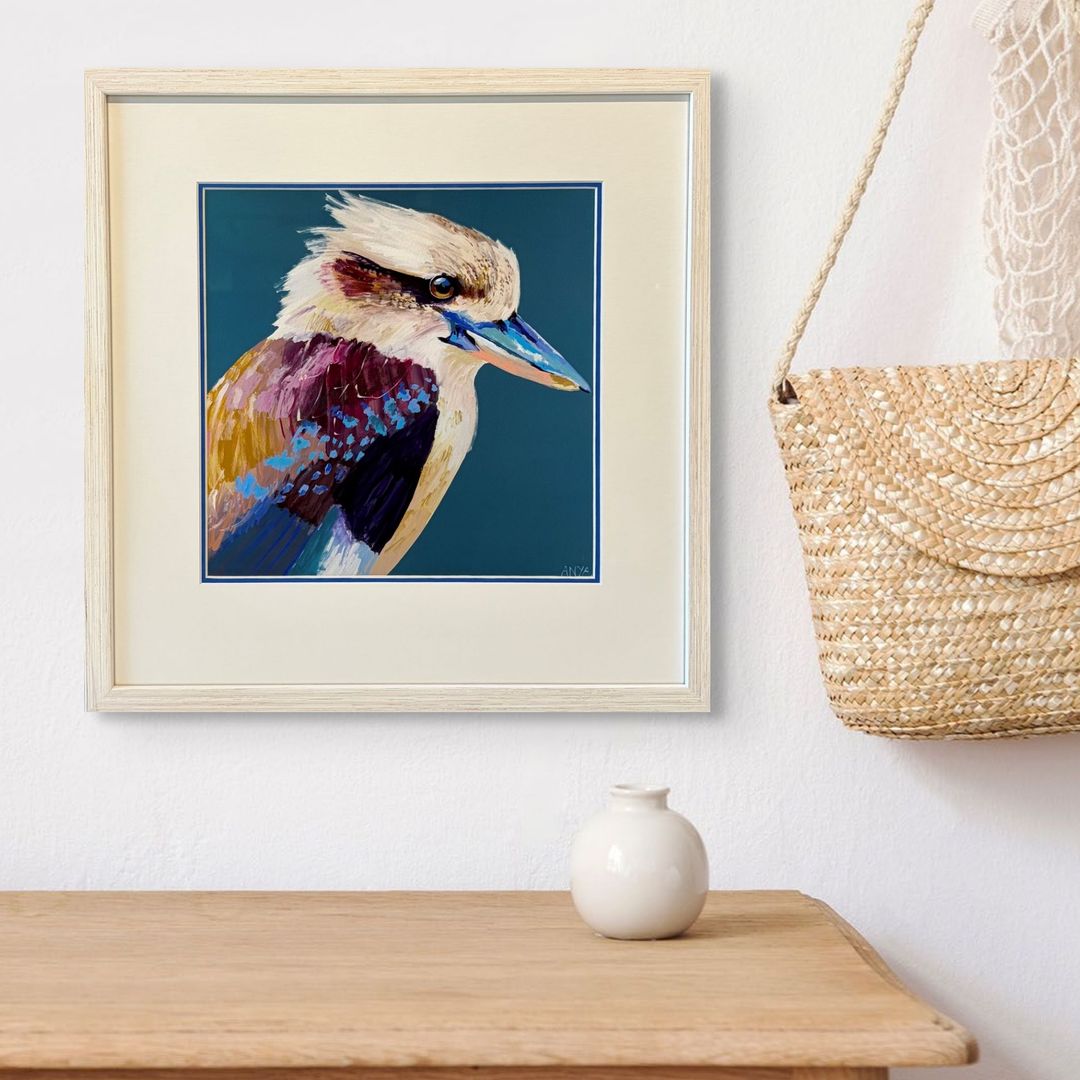 Framed in a white wash wood grain frame and double mat, utilizing 70% UV protection Non-Reflective Art Glass.
