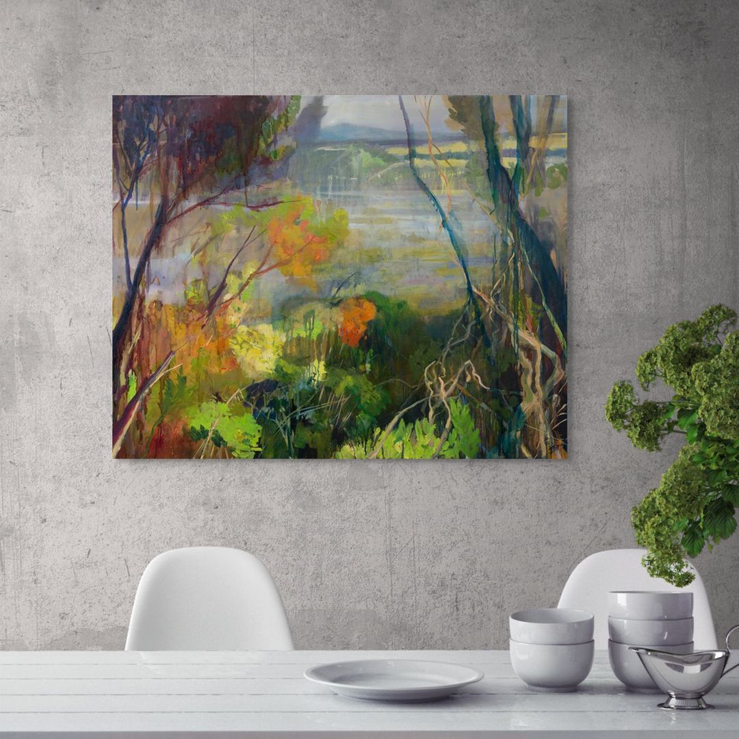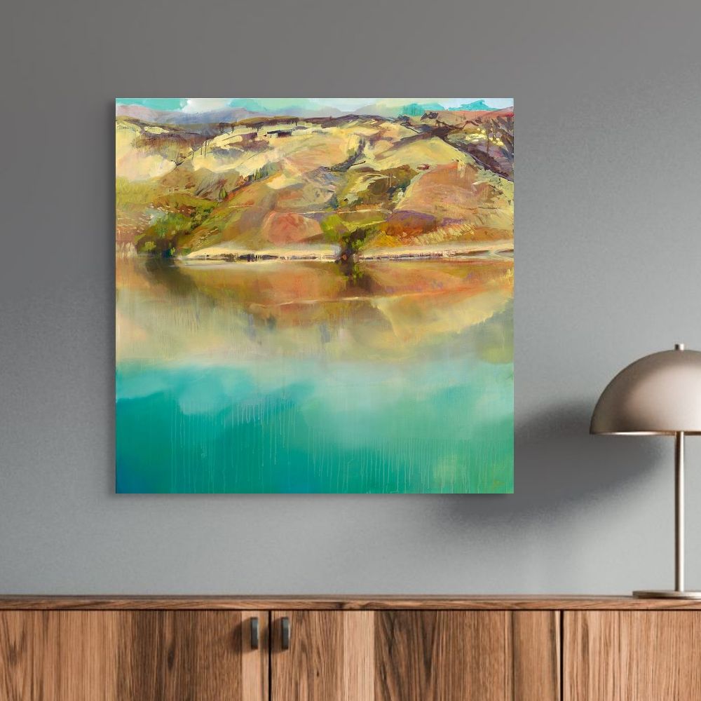 There is a recurring theme of landscape in her work with the use of colour as a visual language which makes a strong impact. This is achieved by her preferred medium of oil paint. This is because of the intensity of colour and light that is achieved through numerous layers of glazes. Beginning with thin washes of colour, followed by a process of building up of more opaque layers to reflect what is beneath. Through this process, there is a continual removal and addition of medium until she comes to a place of contentment and resolution. Jacinda describes herself as an emotive colourist, producing work that creates escapism not just for herself, but also for the viewer.