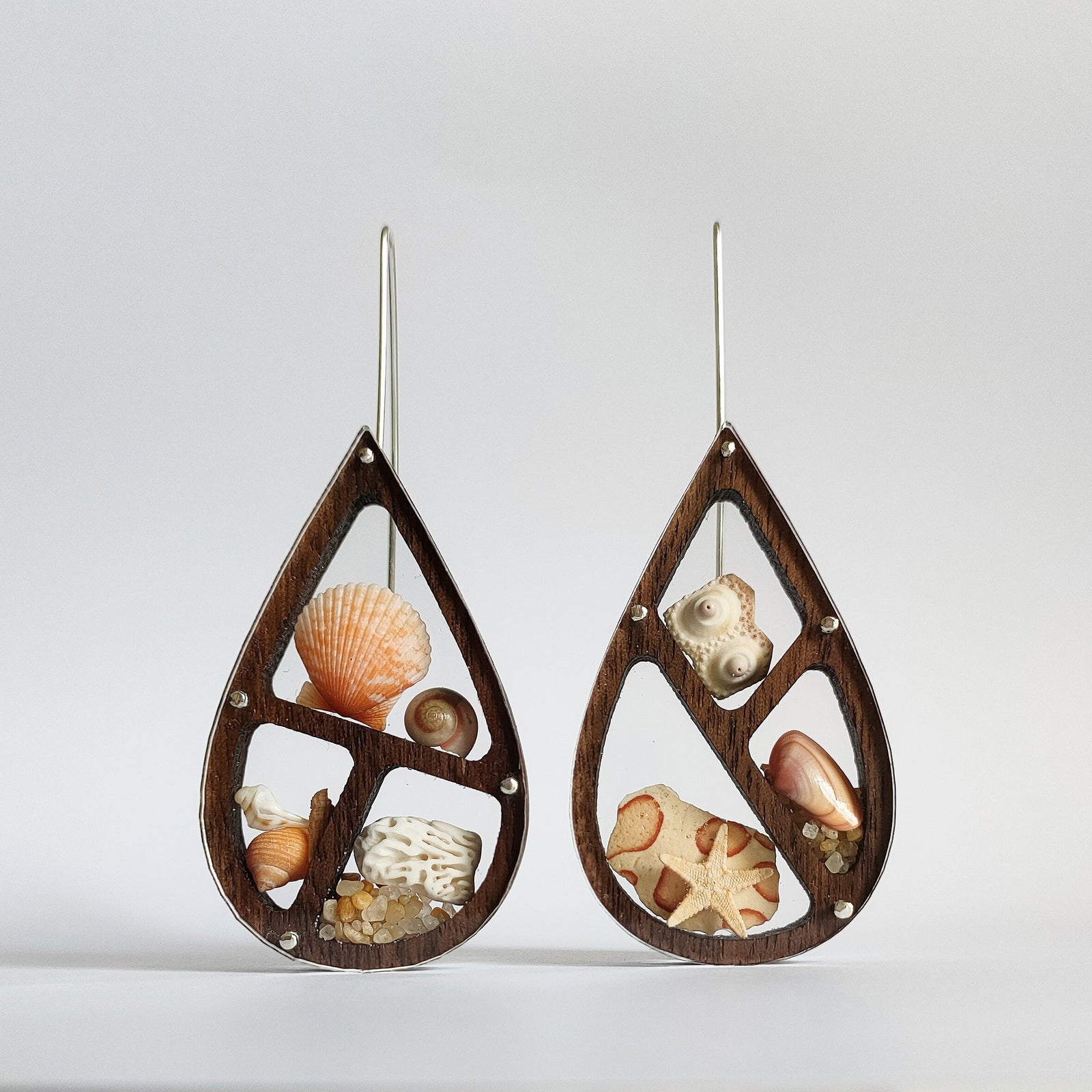 SOLDOval Blue and Green Opals - Illustrated Leather Earrings