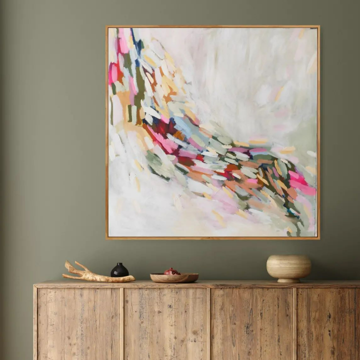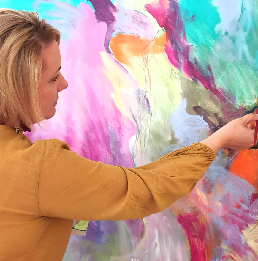 Kat Ferguson is an independent artist who aspires to encourage the love of abstract art by creating vibrant energetic work that transforms any space…Her colourful statement pieces add joy to a space, whether it be a home, office or gallery.